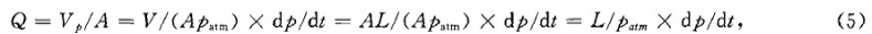 式中:A为织物试样的测试面积;L为低压气室的长度;dp/dt为低压气室内压力随时间的变化情况.从式(5)可以看出,安全气囊织物动态透气量Q与低压气室的长度L、大气压力Patm、低压气室内压力随时间的变化情况dp/dt有关,因为L和Patm均已知,所以只需测得dp/d t就可以计算出Q,而dp/d t可以由安装在低压气室的压力传感器测得.
