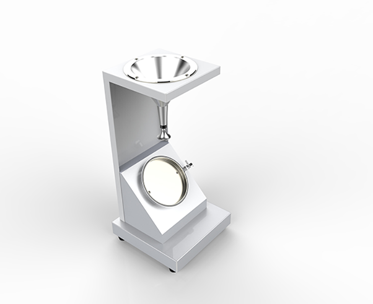 (3).使织物的经向顺着布面水珠流下的方向,加入27±1℃250ml的水于漏斗测试仪器的漏斗中,使它于25-30s喷完,并且添加液体时避免与漏斗接触。漏斗的移动会改变喷头与织物的相对位置。