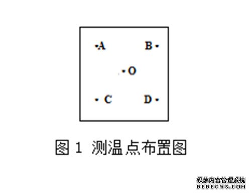 在校准方法中,外观是指用目测的方法进行检查,其结果应符合5.1的规定。而关于温度参数的校准,需要将水浴锅加热温度设定在被校温度点。测温点的布置如图1所示。O点位于有效工作区的几何中心,其余各测温点到水浴锅内壁的距离为各自边长的1/10。温度传感器离搁板20mm。水浴锅升到设定温度并稳定后,开始测量。每隔3min测量1次,连续测量10次,记录各测温点和水浴锅显示的温度值。实际工作中也可根据不同型式的设备进行测温点布置,测温点不得少于5点。
