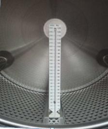 1.手动转动滚筒,把水位校准尺放在两片提升挡叶中间,并垂直立于滚筒底部,关好门。