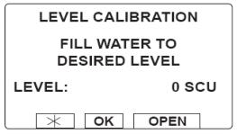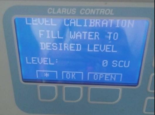 3.再次按下OPEN开启水阀,增加一定水量,停止后按OK.输入对应RU读数,右侧读数(上图示例输入25),点OK,再次进入加水界面。