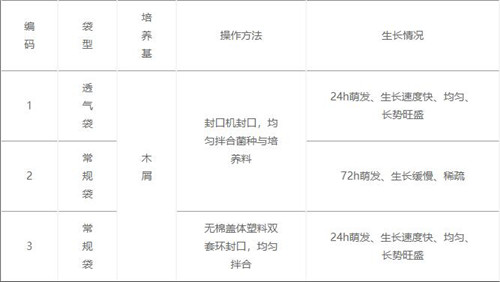 透气性主要影响菌种发菌的数量和时间,针对这一问题,目前行业已有几种较为成熟的解决方案,分别为透气膜型菌种袋、棉塞封口和无棉盖体塑料双套环封口三种形式。棉塞封口属于传统封口方法,可通用于常规塑料瓶或袋,但在灭菌时棉塞易受潮而增加菌种污染率;而无棉盖体塑料双套环封口法透气效果良好,但操作复杂,不利于现代机械化生产;透气膜型菌种袋是在常规塑料袋表面粘合一块或多块方形微孔透气膜替代普通塑料膜材,这种微孔膜既允许氧气分子顺利通过又阻止了液态水的渗透,在为菌丝生长提供充足的氧气的同时防止外界微生物的侵入。曾有相关学者对180*300*0.05(mm)规格的透气性菌种袋和150*280*0.06mm(mm)规格的常规菌种袋分别进行了菌种培养试验:在麦粒培养基上接种香菇母种,长满后做接种材料。在透气袋和常规袋中装入490g和400g木屑培养基,常压灭菌14h,冷却后接种16g/袋,至于室温24℃±2℃下做如表2处理,终编码2.不透气常规袋中菌种停止生长,而编码1.透气袋和编码3.具有透气装置的常规袋内的菌种萌发、生长快速,均匀、长势旺盛,但编码1.透气袋菌丝满袋时间为10-11天,较编码3.常规袋的满袋时间(40-45天)提前了进3倍左右。这个试验充分反映了透气膜性菌种袋在菌丝生长质量和满袋时间方面具有显著的优势,对于未来制种工业的产业化发展提供了有力的支持。
