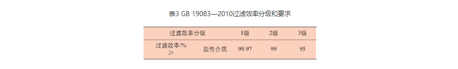 GB 19083—2010测试常用仪器是美国TSI 8130自动滤料测试台,在气流量为85L/min情况下,口罩对非油性介质颗粒过滤效率分级和要求见表3。