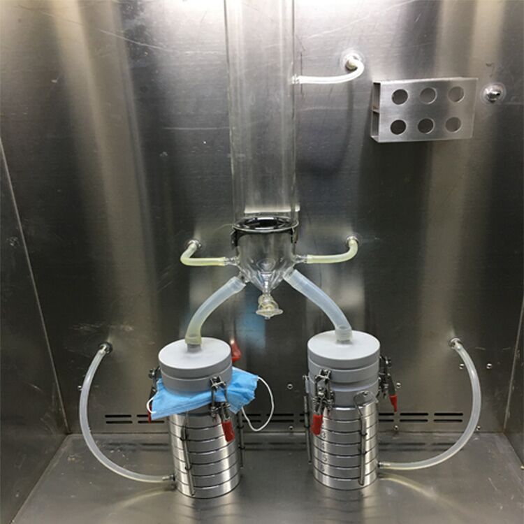 ②将直径90mm采样平板装入Anderson六级采样器,采样器的气体流速控制在28.3L/min,蠕动泵流量为0.180mL/min,供液时间设置为1min,采样时间设置为2min,系统清洗时间设置为1min,测试前测一次阳性质控。